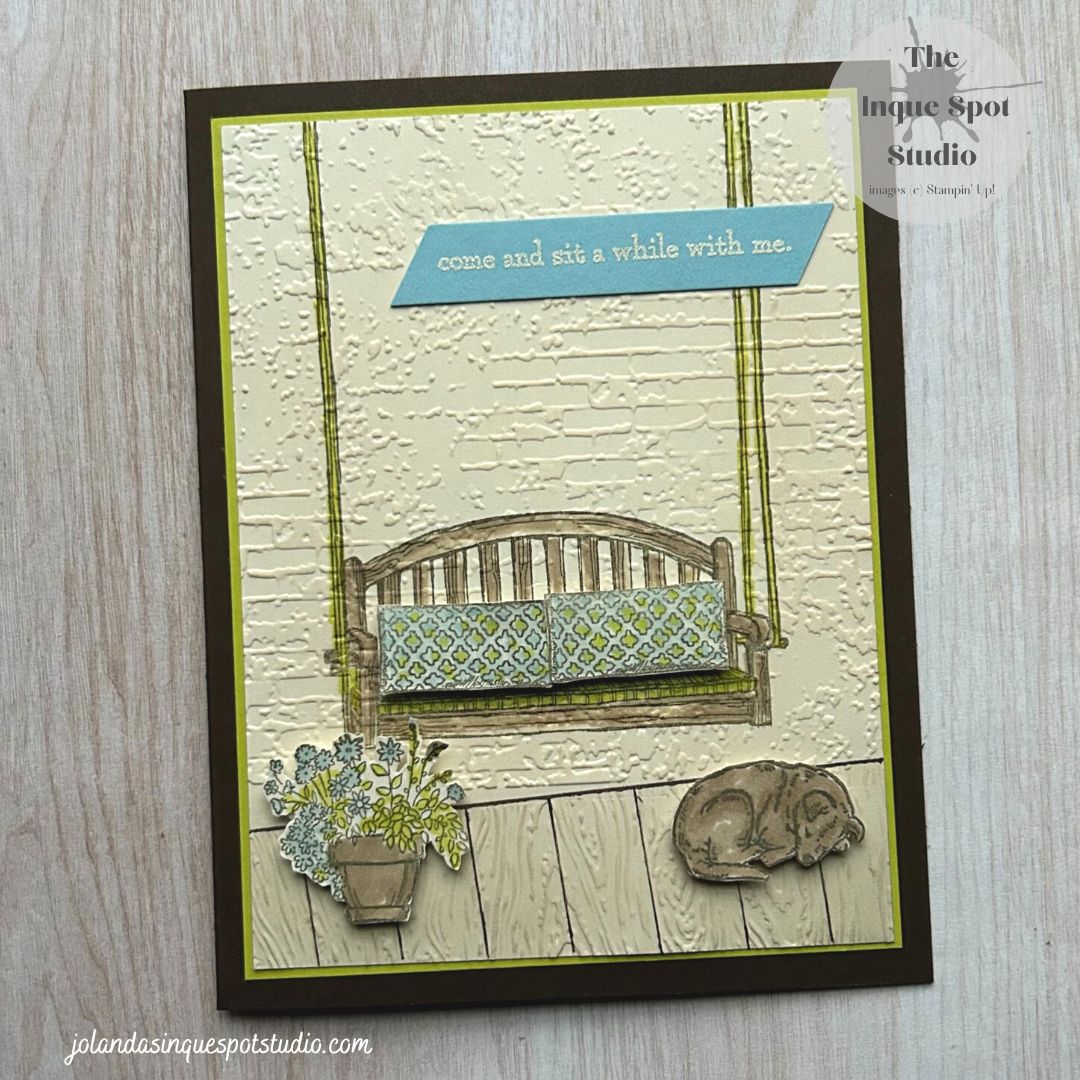 Welcome back! Monday and a brand-new week…let’s have some fun. Over at Farm Quest (#45) the theme is Porch Furniture. I dug out an old favorite stamp set, Sitting Here for this. I selected the Color Throwdown (#779) suggested colors and took inspiration from the Paper Craft Crew (#556) sketch design which I flipped. MuchContinue reading “Sitting Here – Come and Sit a While”