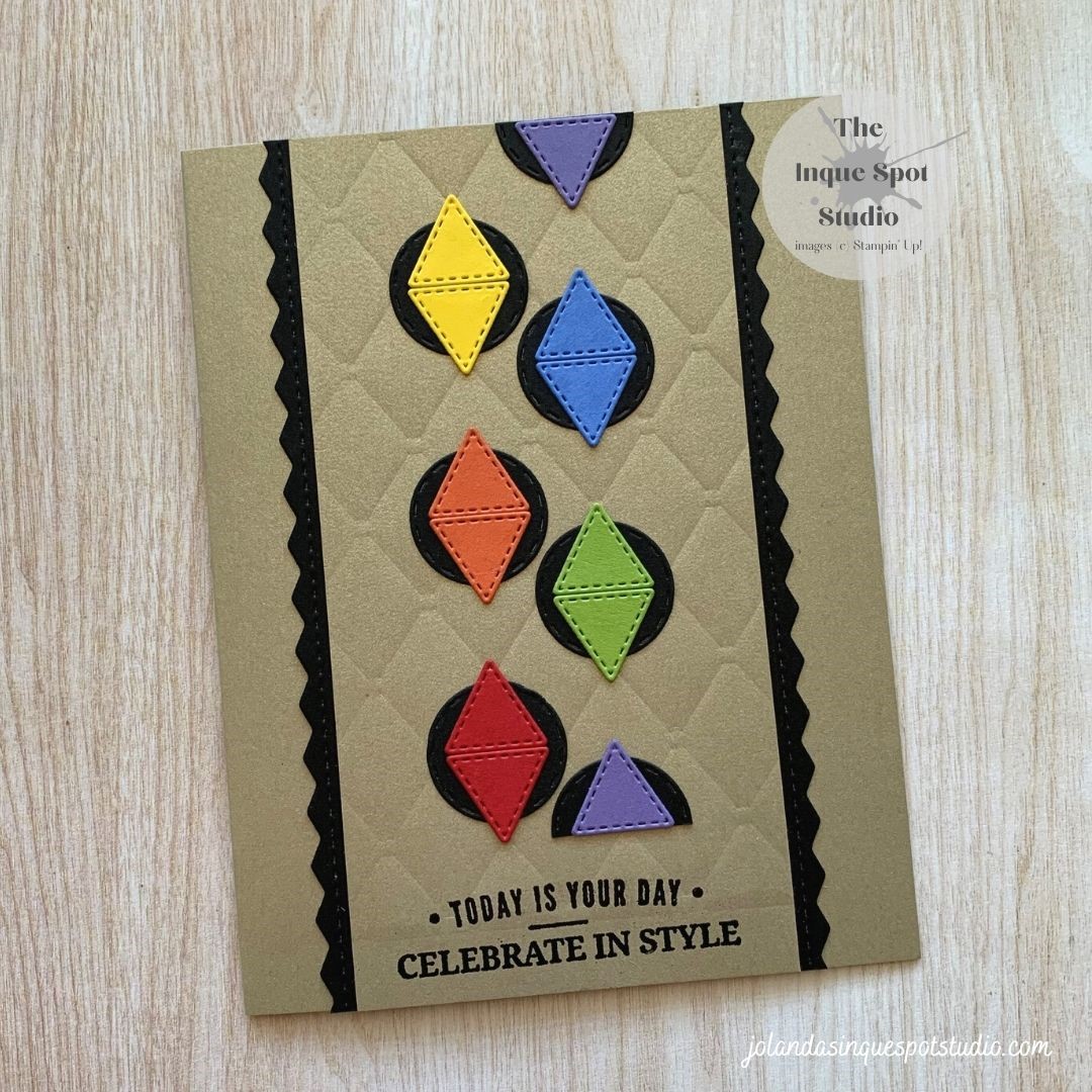 Welcome back! Let’s play with a few challenges… Inspiration Station (#24) Mardi Gras, Retro Rubber (#177) Tic Tac Toe Board and bringing it all together, Freshly Made Sketches (#525). Here is the result: Steps: Card Base / Card Front: (8½” x 5½” scored at 4¼”) Brushed Gold cardstock. Side Trim: (½” x 5½”) Basic BlackContinue reading “Celebrate in Style – Truly Tailored”