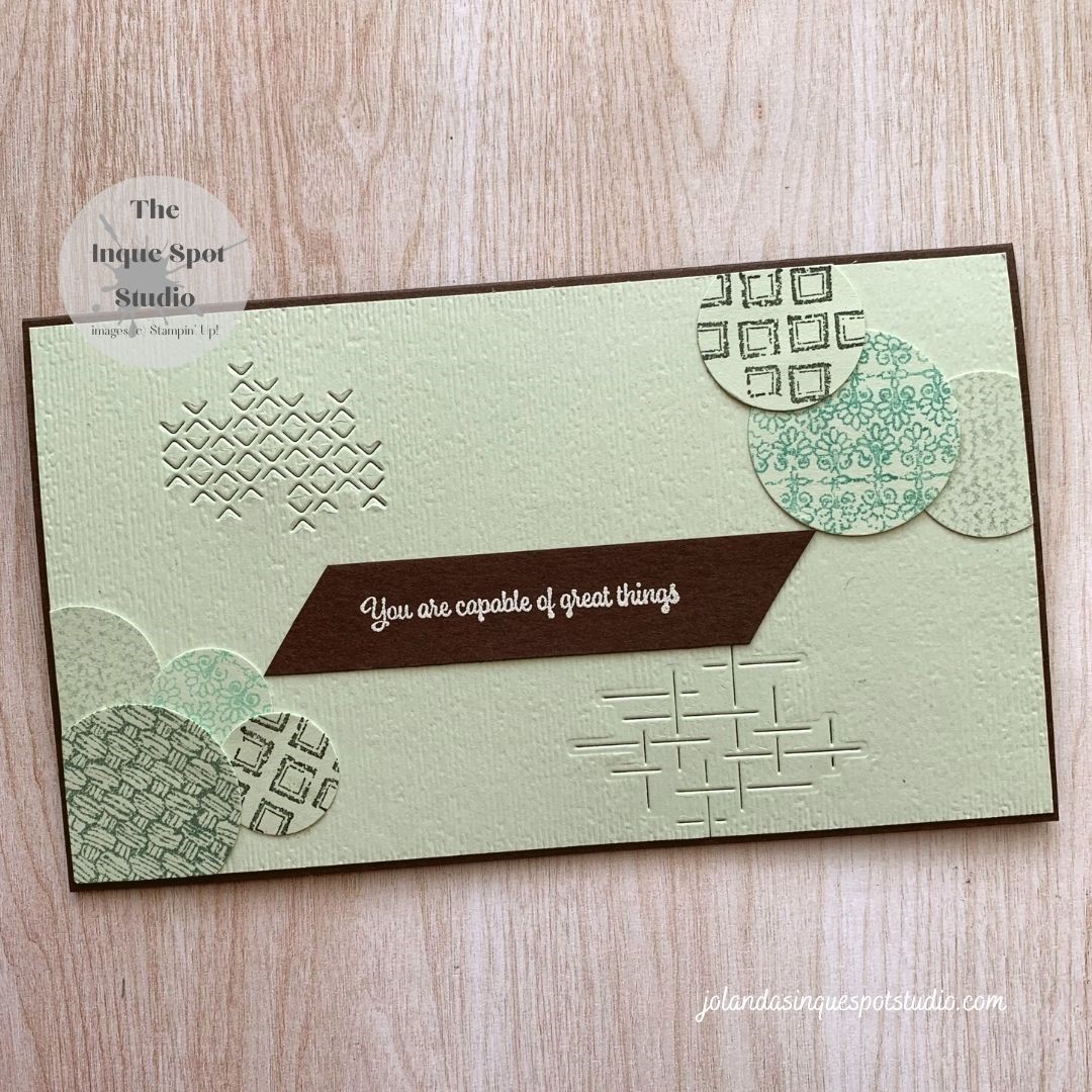 Our current challenge at CARDZ 4 GUYZ (#291) is to create a Slim Line card. Wow! That is a wide-open category…Anything Goes. I prefer to make Mini Slim-Line cards (6” x 3½”) so, I chose the layout from the Sketch Saturday Challenge (#695) and the Colors from the Facebook SU! Color Challenge for March. HereContinue reading “Through it Together – You are Capable”