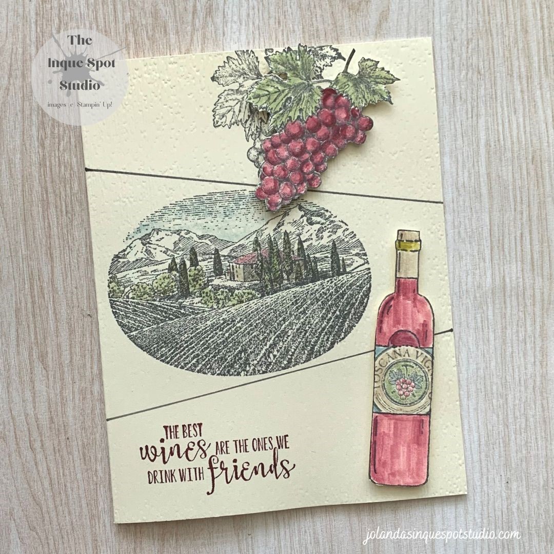 Welcome back! Time in the Studio and having a bit of fun with a few challenges today… Global Design Project (#399) for their Fruit theme. Even better than Lemonade from Lemons is Wine from Grapes…especially when shared with friends. I chose the colors suggested by Sunday Stamps (#311) and the sketch from Freshly Made (#591)Continue reading “My Favorite Fruit – Sharing with Friends”