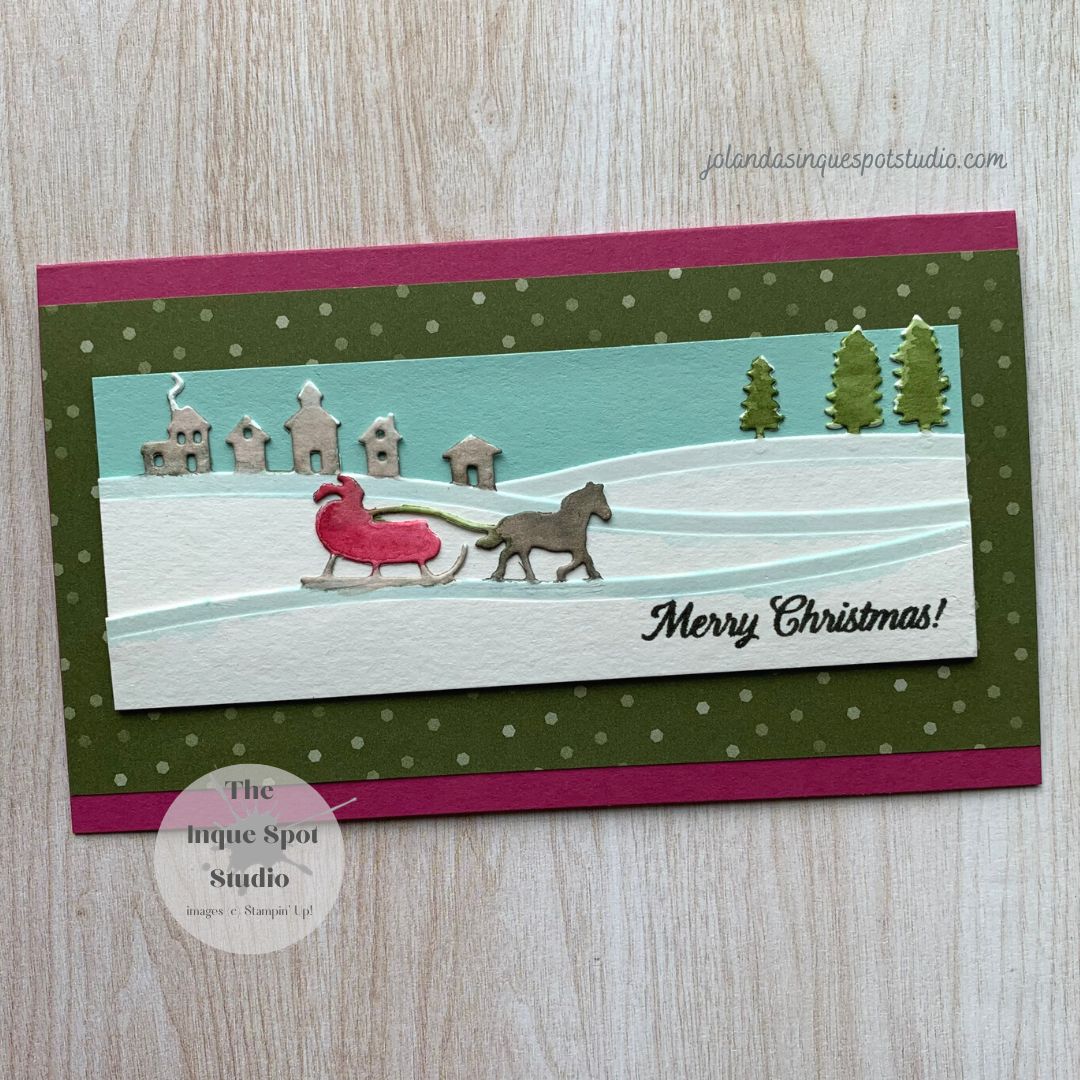 Welcome back! It’s Tuesday…Design Team Day…I was able to combine all three challenges. I love when ideas come together that will work for each of them. Cardz 4 Guyz (#335) is looking for a Winter Scene, Hand Stamped Sentiments (#427) has the colors, and Facebook’s Case-ing Tuesday (#434) has selected the Slim Line card onContinue reading “One Horse Open Sleigh – Merry Christmas”